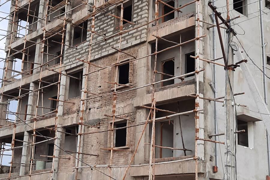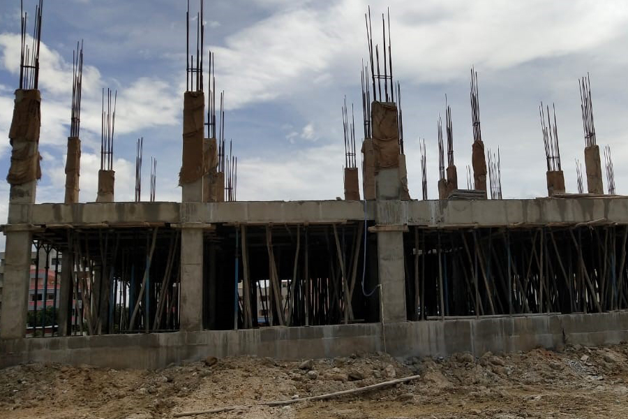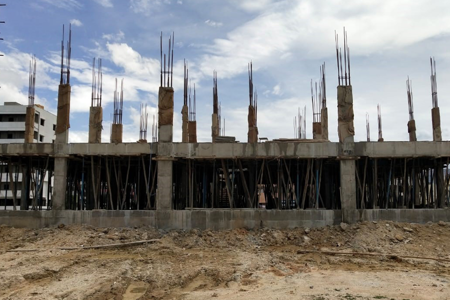 STRUCTURE: R.C.C. (1:1.5:3) using 20mm metal for Footings and Columns as per Designs Beams as per design of the Structural Engineers.